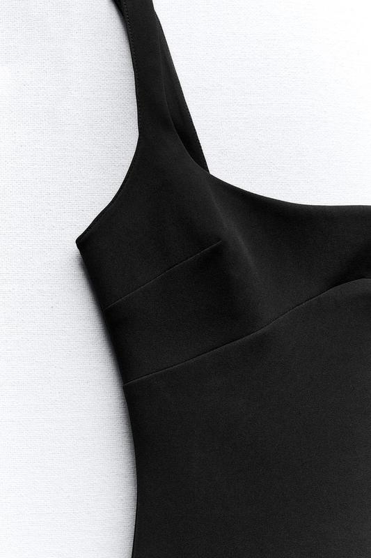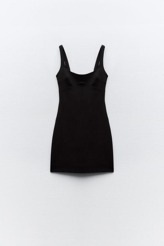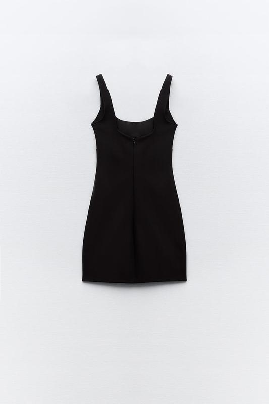 Короткое облегающее платье с круглым вырезом и бретелями. Застегивается на скрытую молнию сзади и имеет подкладку в тон.Черный <unk> 8342/301