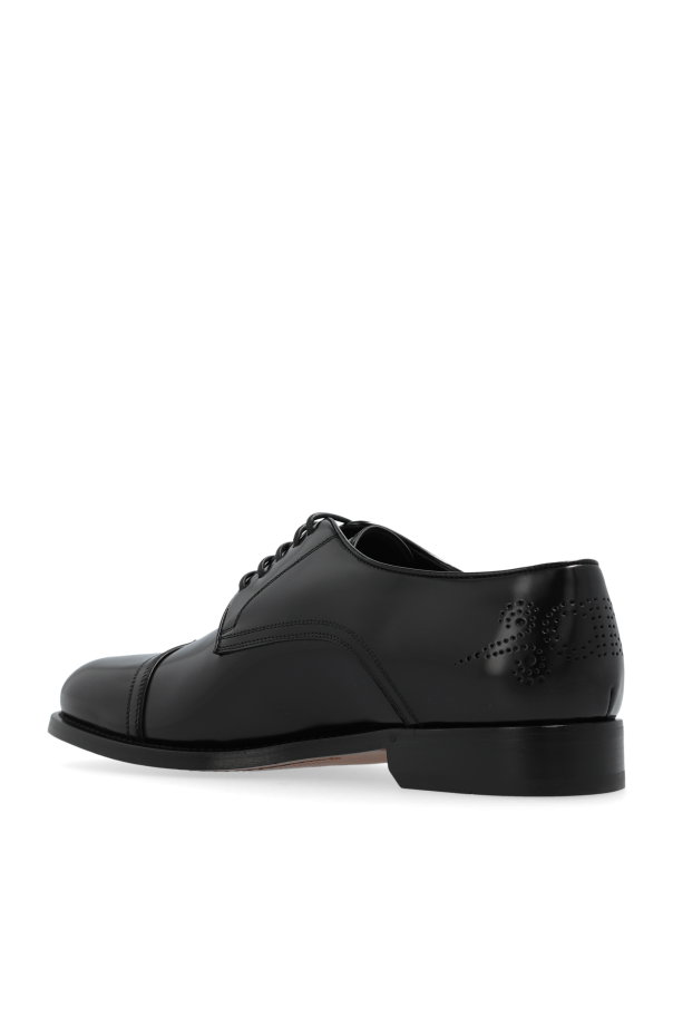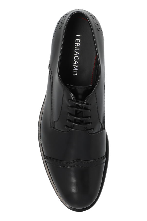 Introducing the exquisite 'Credence' men's leather shoes by FERRAGAMO, a testament to classic sophistication and contemporary style. Crafted from premium quality leather, these shoes boast a sleek, all-black design that exudes elegance. The rounded toe, smooth surface, and subtle stitching on the front and sides enhance their refined appearance, making them a versatile addition to any wardrobe. The distinctive feature of these shoes is the delicate brogue pattern near the heel, adding a touch of artistry and uniqueness. The black, slender laces and flat, abrasion-resistant synthetic sole ensure both comfort and durability, promising a seamless experience with every step. Inside, the contrast-colored lining with the boldly printed 'FERRAGAMO' designer name on the insole adds an exclusive signature touch, distinguishing these shoes as a work of luxury. Moreover, the extra-wide insole ensures an exceptional fit, catering to those in search of both style and comfort. The 'Credence' shoes are not merely an accessory but a statement of refined taste and craftsmanship. Why Purchase This Product? Handcrafted from high-quality leather for lasting durability and elegance. Unique brogue detailing adds a distinctive character. Designed by the renowned FERRAGAMO, ensuring exclusivity and prestige. Extra-wide insole offers unparalleled comfort, suitable for extended wear. The versatile design makes it suitable for a variety of occasions, from formal to casual.