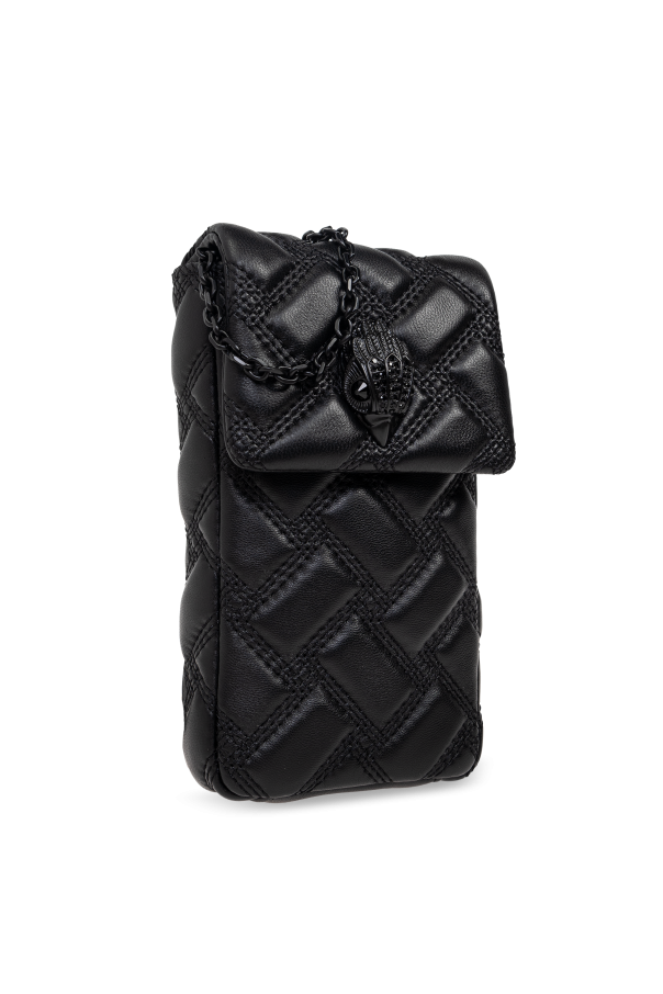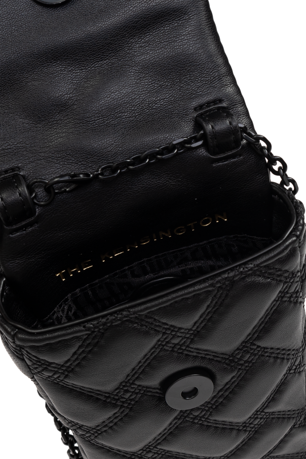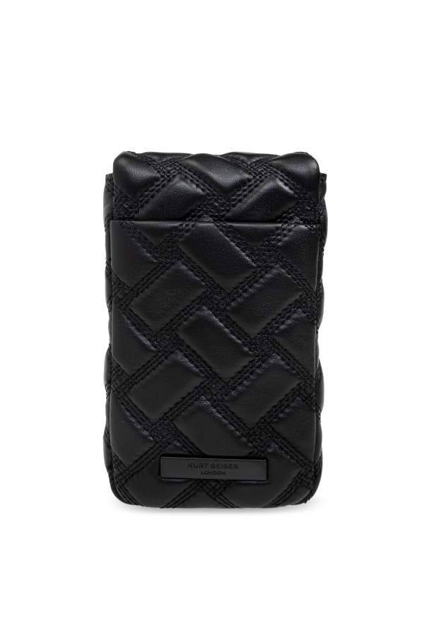 Introducing the "Kensington" Phone Case on a Strap by the renowned designer Kurt Geiger, a finely crafted accessory that melds functionality with high fashion. This exquisite piece is designed for the modern woman, offering a blend of elegance and practicality. Crafted from 100% genuine leather, the outer layer boasts an embossed woven pattern that exudes sophistication. The rectangular silhouette with rounded edges is complemented by a magnetic snap closure, ensuring your essentials are secure. A distinctive feature is the metal lion head on the flap, a bold decorative detail that symbolizes the brand's strength and regality. Below, a rectangular metal plaque bearing the designer's name adds a touch of luxury, while the gold-stamped logo "The Kensington" inside the flap enhances the case's authenticity and appeal. The practicality of this case is underscored by its interior design, which includes a main compartment and two card slots, providing ample space for your phone and essentials. The shoulder strap, fashioned from a chic chain, allows this case to be worn as a small purse, making it a versatile addition to any outfit. Why Purchase This Product? Elegance and Functionality: Combines sophisticated design with practical storage. High-Quality Materials: Made from 100% genuine leather, ensuring durability and style. Signature Branding: Features distinctive metal details and branding for authenticity. Versatility: Can be worn as a stylish small purse, thanks to the chic chain strap.