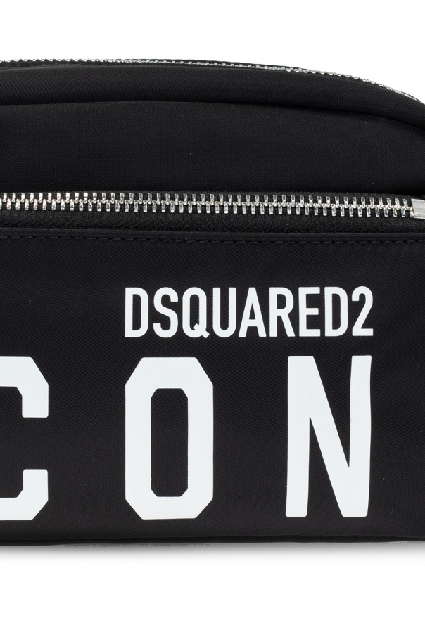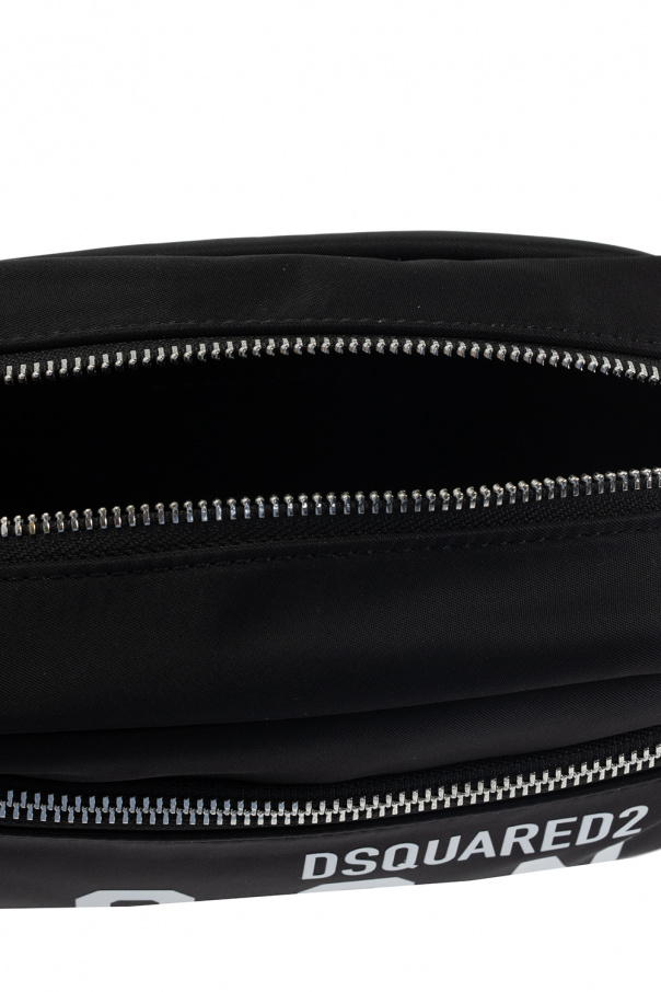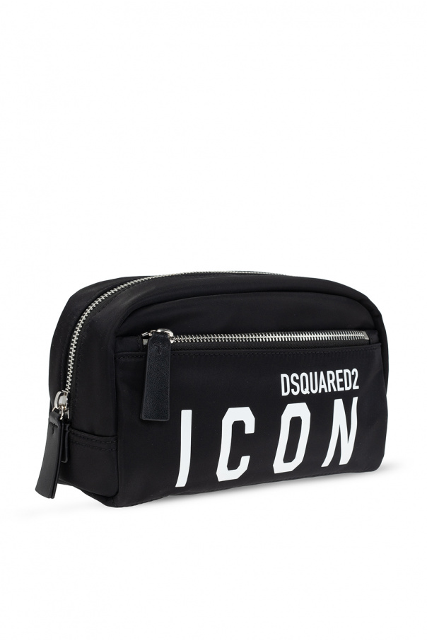 Black wash bag from Dsquared2. Fastened with a zip, this design features a zip fastening, white logo print, silver-tone metal hardware and one internal compartment with one zip pocket.