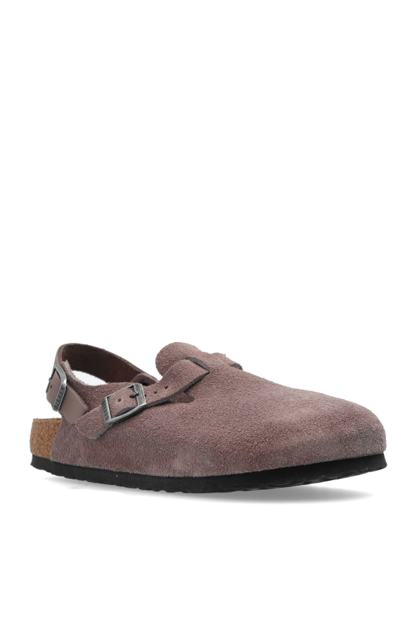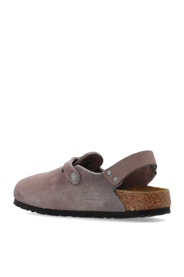 Introducing the Tokio II Suede – an exquisite addition to the elite collection of Birkenstock. These elegant shoes embody a harmonious blend of classic design and contemporary flair, making them a must-have for the discerning fashionista. Crafted from premium suede, the exterior exudes sophistication and luxury. The classic closed-toe design is complemented by an adjustable heel strap, adorned with metallic buckles for a perfect fit. The interior is thoughtfully lined with a comfortable material, ensuring a sublime wearing experience. The footbed, made from high-quality cork, offers impeccable cushioning and support, while the rubber outsole ensures optimal traction. Subtle branding on the side and minimalist stitching enhance the overall elegance of the shoes, with metal rivets providing additional reinforcement at stress points. Presented in a striking violet hue, the Tokio II Suede stands out with its chic and versatile appeal. Whether paired with casual attire or formal ensembles, these shoes effortlessly elevate any outfit. Why Choose This Product? Luxurious suede material for a refined aesthetic. Adjustable heel strap for a secure and customized fit. Comfortable cork footbed for superior cushioning. Durable rubber outsole for excellent grip. Elegant and versatile design suitable for various occasions.