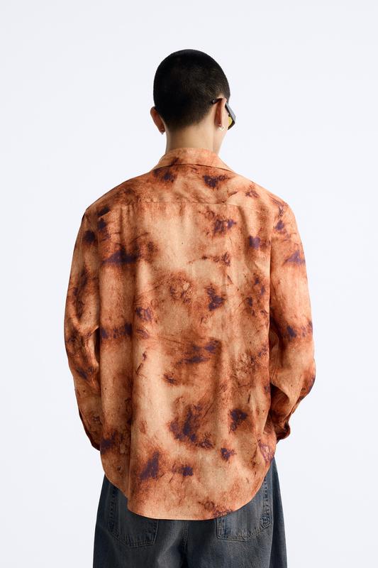 Рубашка на длинный рукав в огненном принте, из легкой, атласной ткани. Будет стильным акцентом в вашем образе. Широкий крой.Размер :