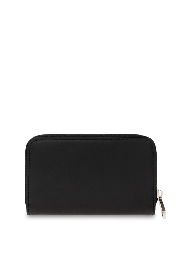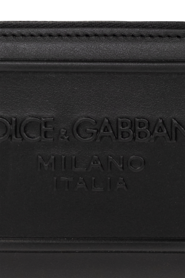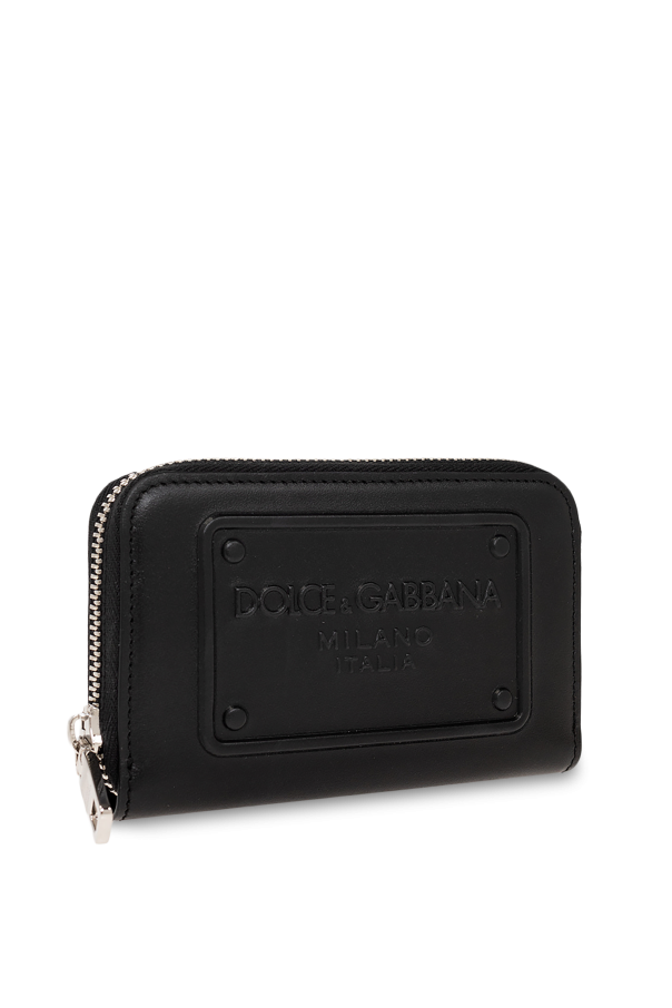 Black card holder from Dolce & Gabbana. Made of calf leather, this item features a zip fastening, raised logo, three internal card slots and silver-tone metal hardware.