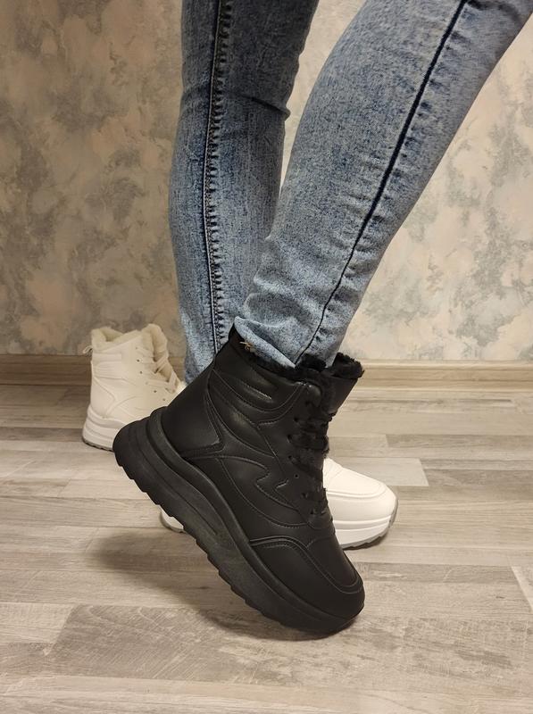 Жіночі зимові хайтопи, еко-шкіра, всередині щільне та тепле еко-хутро