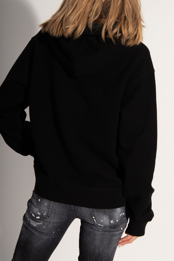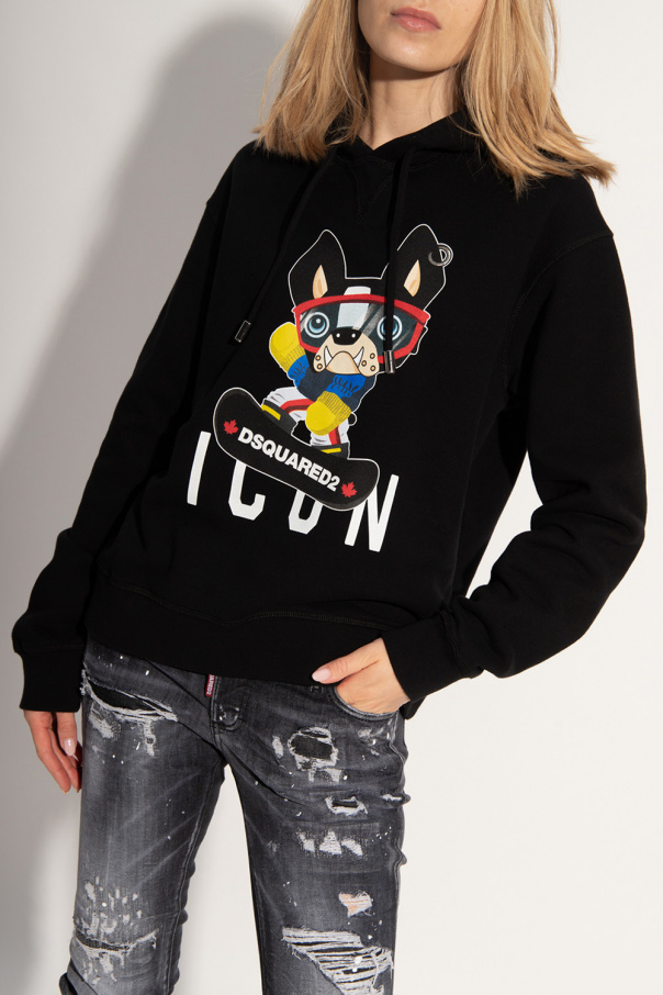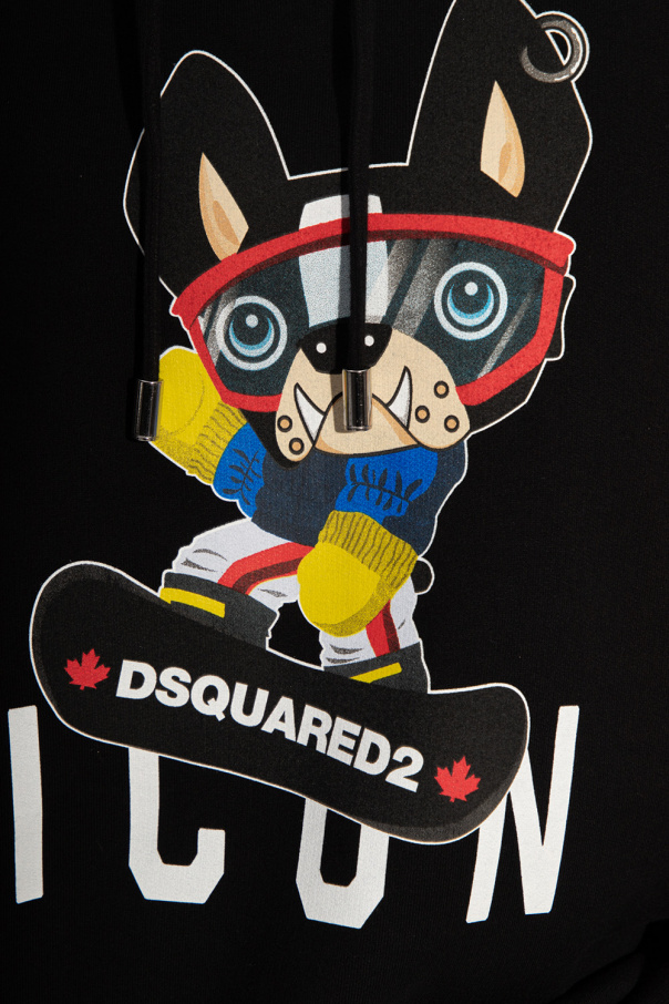 Black sweatshirt with a drawcord-adjustable hood from Dsquared2. Crafted from cotton jersey, this hoodie showcases rib detailing on the bottom hem and cuffs and a colourful graphic print with the brand's logo on the front.