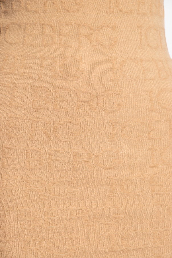 Beige fitted dress from Iceberg. Decorated with a monogram, this round neck design has long sleeves.