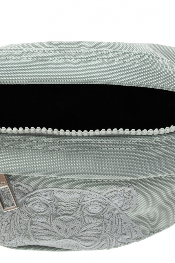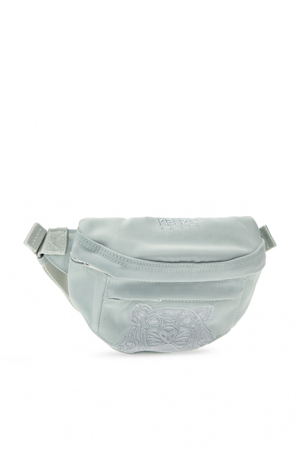Light green belt bag from Kenzo. Embroidered with the label's iconic tiger head motif and its logo, this style features zip fastening, two external zip pockets on the front and back, an adjustable strap and one internal compartment.