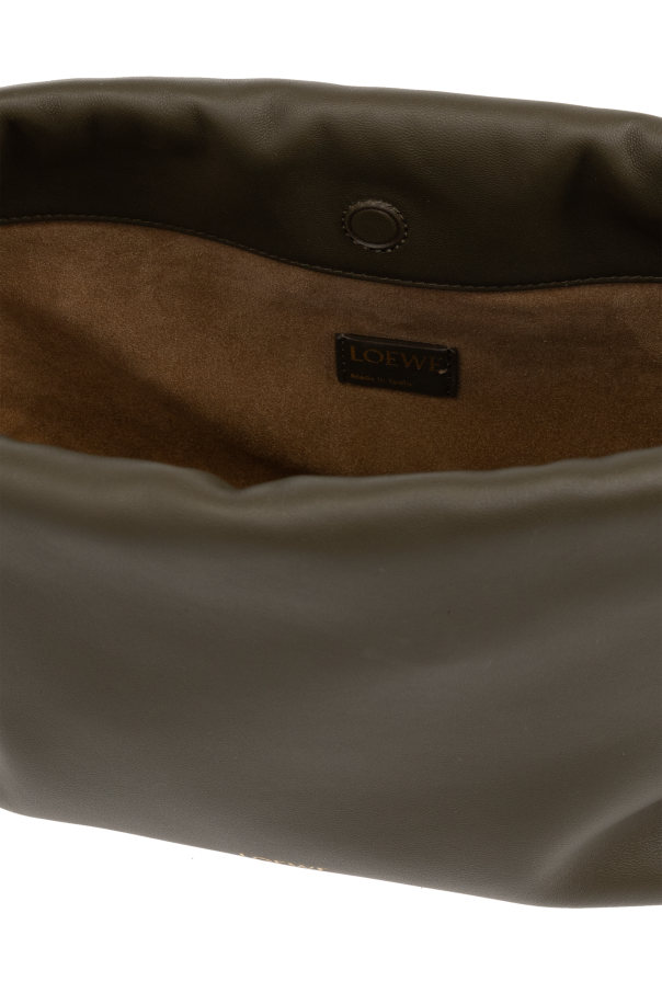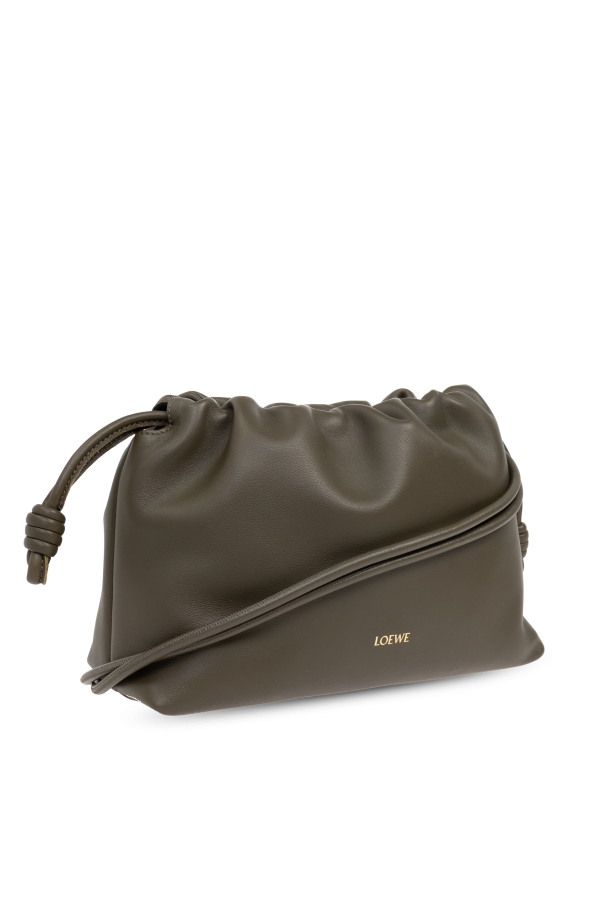 Introducing the "Flamenco" shoulder bag, a quintessential emblem of luxury from the esteemed atelier of Loewe. This exquisite piece encapsulates the harmonious blend of functionality and minimalist design, revered among connoisseurs of exclusive fashion. Crafted from the finest calfskin leather with a subtle sheen, the "Flamenco" offers an aura of understated elegance in a serene olive-green hue that commands admiration without ostentation. The bag's soft, sack-like form provides adaptability in capacity while maintaining a sleek silhouette, with a top that gathers elegantly, evoking a sense of fluidity and grace. A distinctive feature is its innovative closure, allowing the shape and volume to be adjusted with ease, secured by magnetically drawing together its refined straps. The front proudly displays the discreet yet recognizable LOEWE logo, seamlessly integrating prestige with the design. Functionality is not forsaken for form; the interior reveals a contrasting suede lining, equipped with a compartment for essentials, ensuring practicality is as present as polish. Delicate, yet sturdy handles offer versatility in carriage, whether by hand or over the shoulder, making the "Flamenco" an epitome of modern elegance and utility. Why Choose the "Flamenco" Shoulder Bag? Expertly crafted from 100% premium calfskin leather for unparalleled quality. Unique, adjustable closure for customizable shape and volume. Elegant olive-green hue, offering a touch of sophistication to any ensemble. Interior compartment lined with contrasting suede for added luxury and functionality. Subtle incorporation of the LOEWE logo, signifying exclusivity.