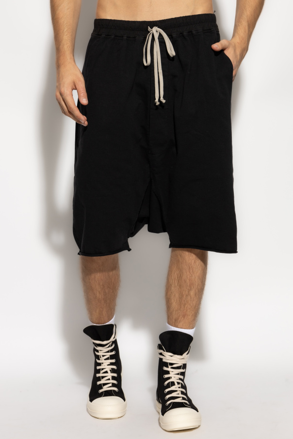 Presenting the luxurious Drawstrings Shorts from the esteemed designer Rick Owens DRKSHDW. These shorts epitomize contemporary elegance with a rebellious twist, effortlessly blending comfort and style. Crafted from 100% Organic Cotton, the Drawstrings Shorts feature a loose, oversized fit with a dropped crotch, extending just below the knee. The deep, rich black hue exudes sophistication, while the lack of pattern keeps the design minimalist yet striking. Adding to their practicality, the shorts boast an elastic waistband with a distinctive white drawstring for adjustable comfort. The front showcases two side pockets, and the back is adorned with two sizable flap pockets, providing both functionality and a touch of avant-garde flair. Subtly frayed edges along the hems contribute to a modern, casual aesthetic. Why choose this product? Exclusive design by Rick Owens DRKSHDW Premium, durable material - 100% Organic Cotton Versatile black color, suitable for various styles Ample storage with four practical pockets Unique, adjustable white drawstring waistband Casual yet sophisticated look with frayed hem details