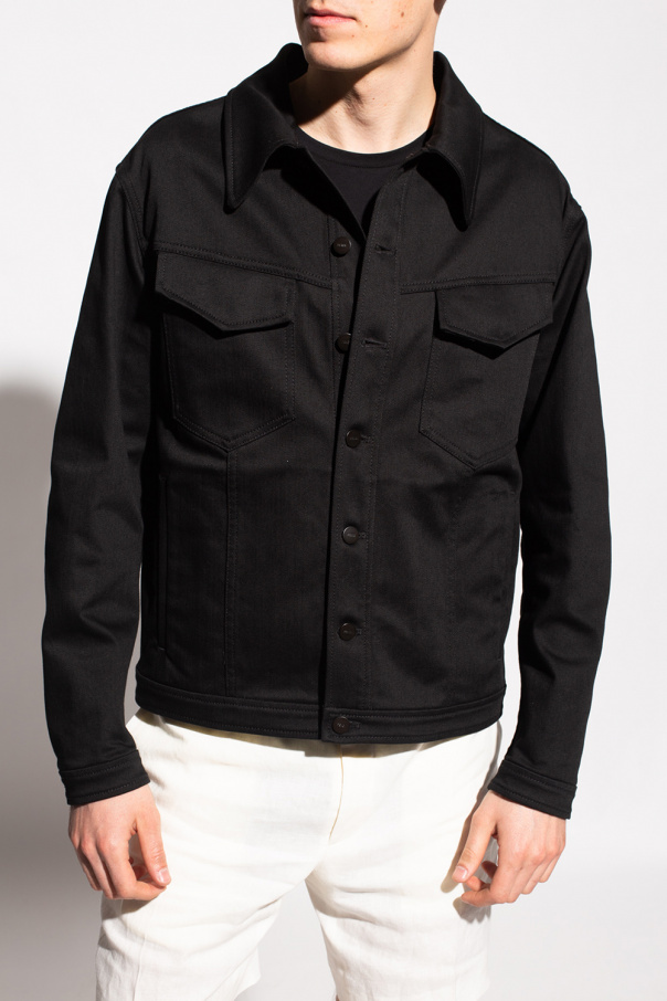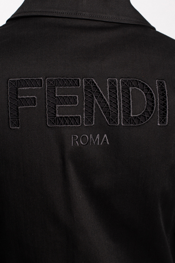 Black denim jacket from Fendi. Fastened with buttons, this long-sleeve design features an embossed logo, two slip pockets and two buttoned flap pockets.