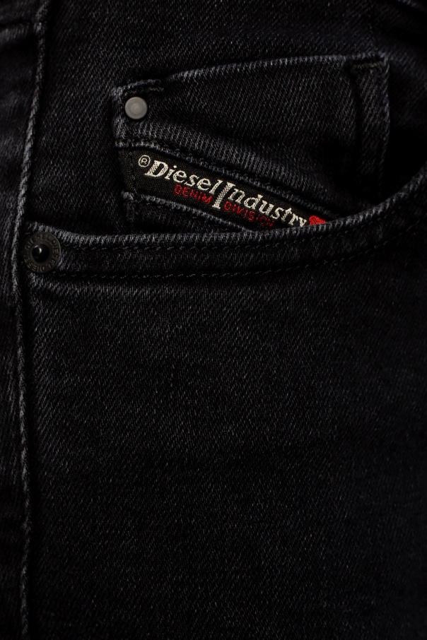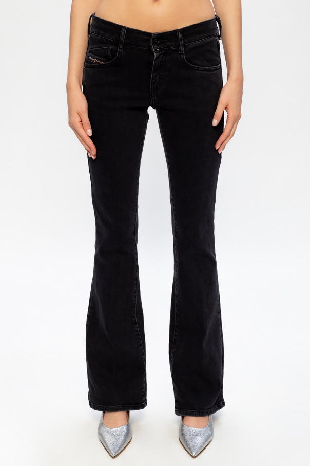Black ‘D-Ebbey’ jeans from Diesel. Crafted from stretch cotton fabric, this design is shaped into a flared leg and features classic zip fly with top button fastening and five pockets.