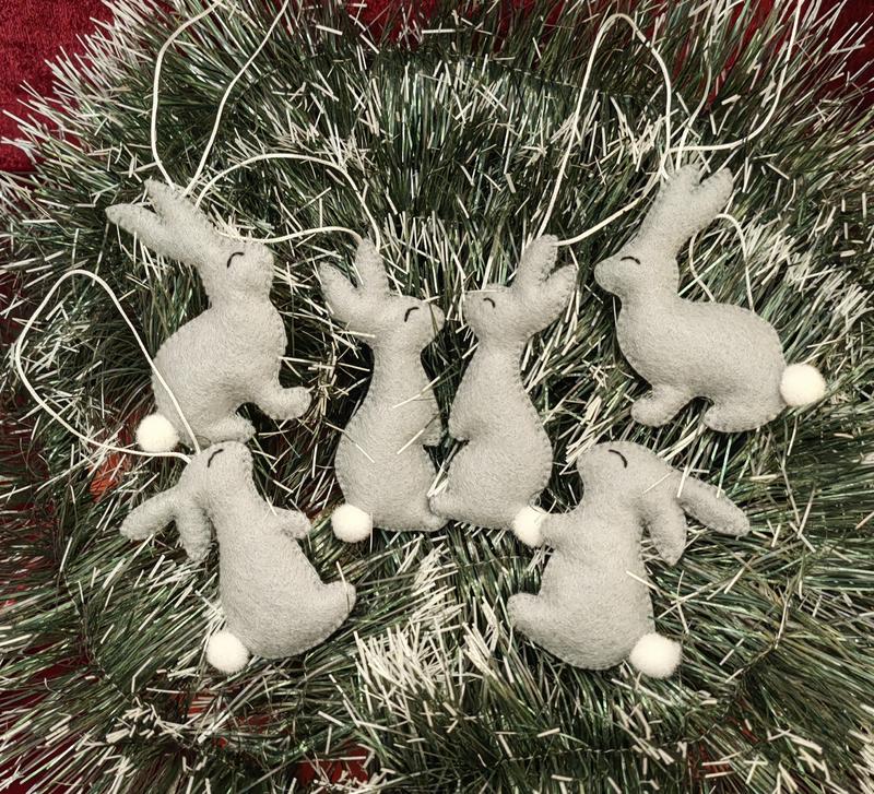 Набор из 6-ти зайчиков, полностью ручная работа, материал: мягкий фетр (Китай), наполнитель - синтепон,