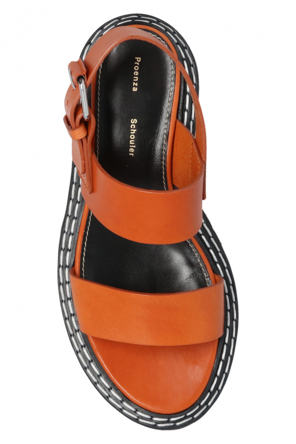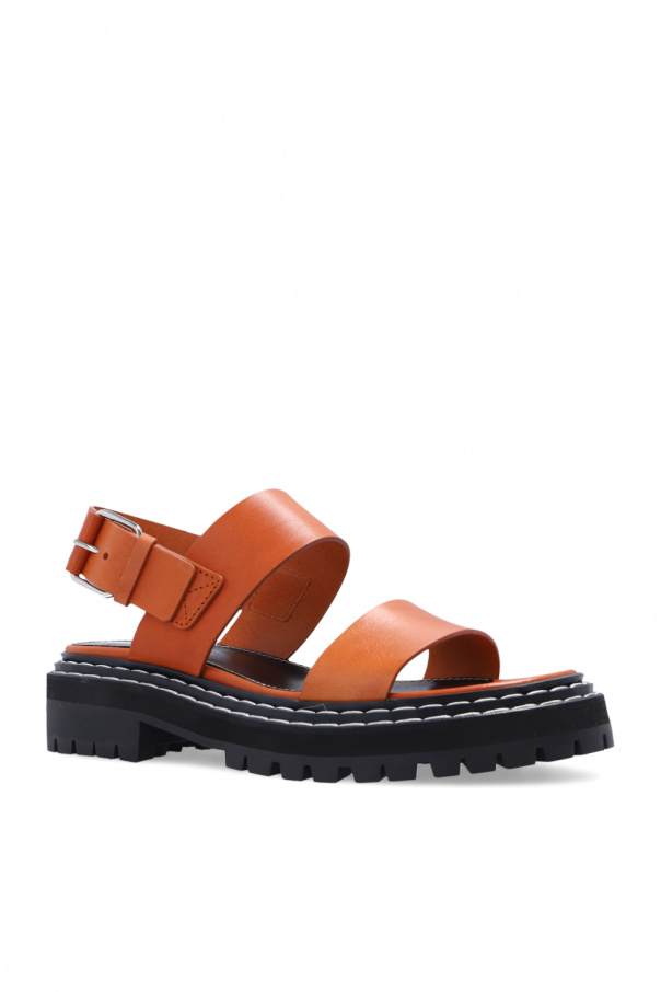 Brown and orange sandals from Proenza Schouler. Crafted from calf leather, this model features a back strap with a silver-tone buckle and a massive black rubber sole accentuated with contrasting seams.