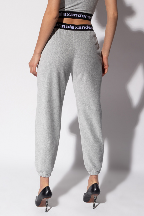 Grey sweatpants from Alexander Wang. Crafted from a cotton blend, this pair features a black elasticated waistband with a white logo and two side seam pockets.