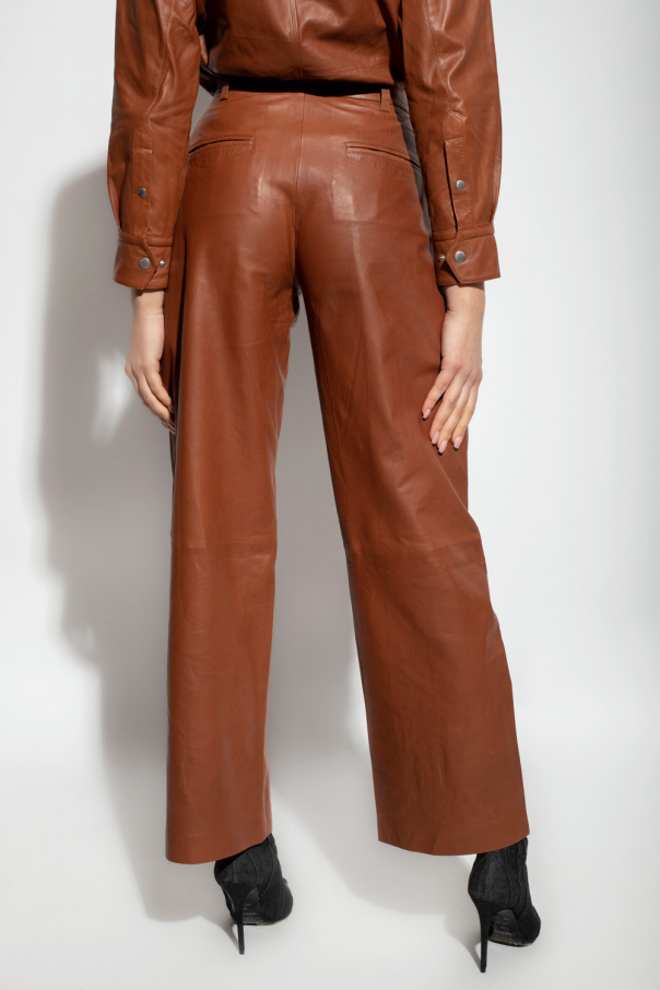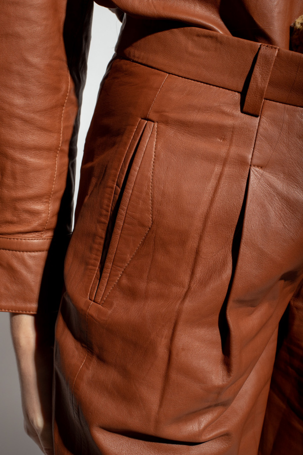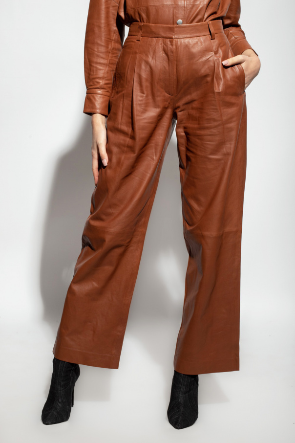 Brown loose-fitting trousers from Rag & Bone. Made of lamb leather, this pair features a zip, hook and button closure, pleats, two front pockets and two back pockets.