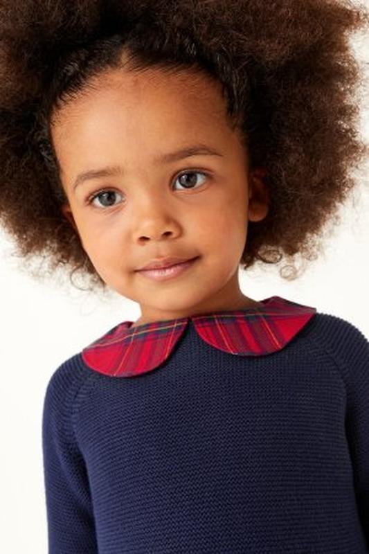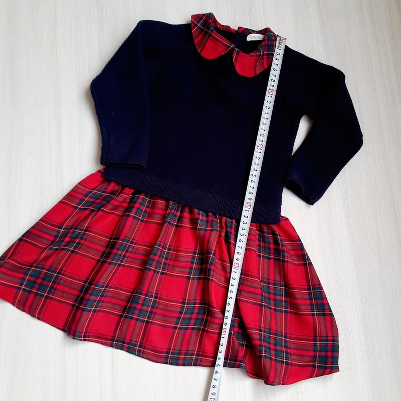 комбинированное платье свитерик с юбкой, очень стильная. свитерик насыщен темно-синего цвета, юбка с воротничками красные в клетку.
