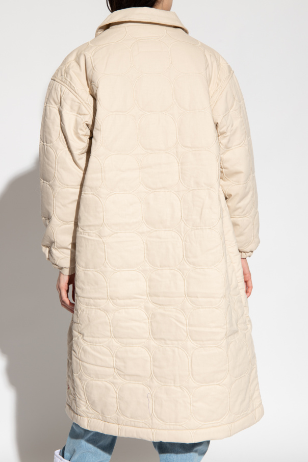 Cream quilted coat from American Vintage. Made of cotton, this design features a zip and snaps, cream and red logo patch, two slip pockets and long sleeves with ribbed cuffs.