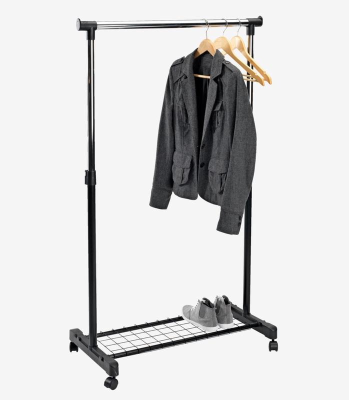 Хром и пластик. Регулируемая высота. С полкой для обуви. 81х43 см, вис. 90/161 см