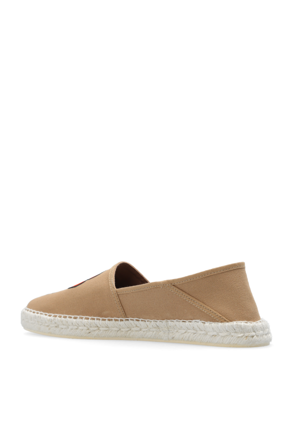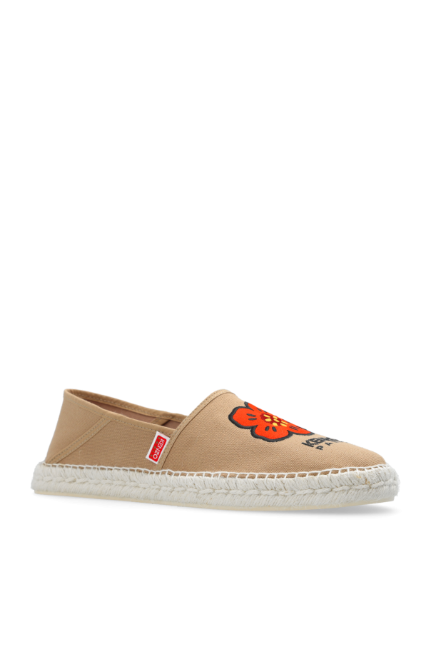 Beige espadrilles from Kenzo. Made of fabric, this pair features a multicolored embroidered logo, the brand's signature floral motif and a cream rubber sole.