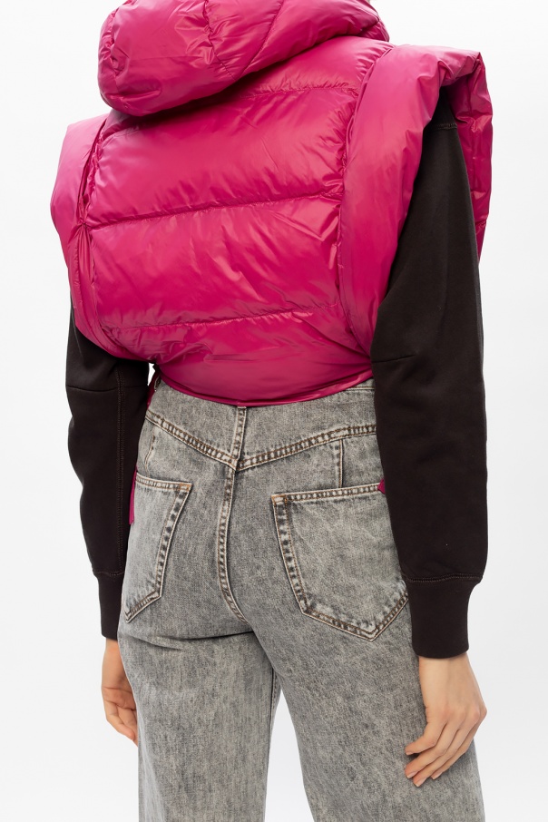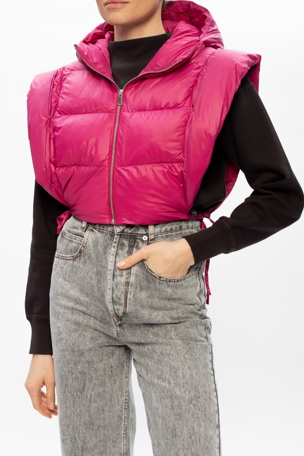 Pink hooded vest from Isabel Marant. Shaped to a cropped silhouette, this style is complete with a zip fastening and self-tie details to the sides.