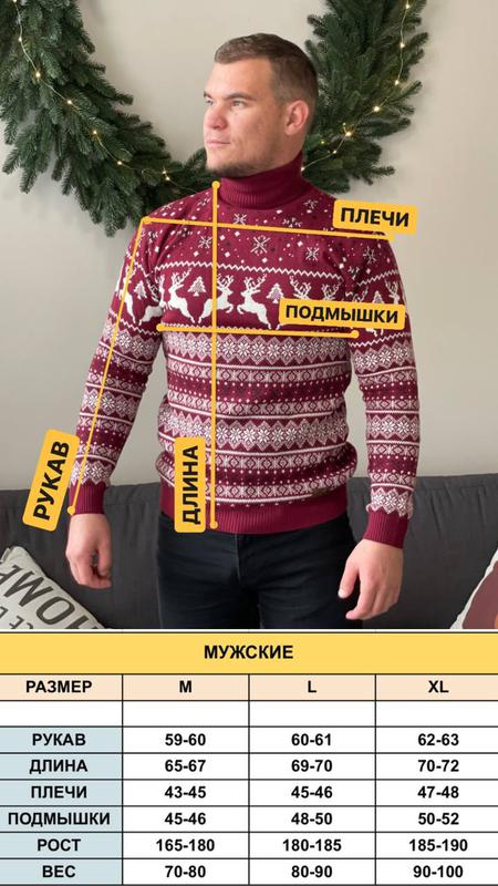 Свитер с оленями мужской шерстяной теплый, свитера новогодние