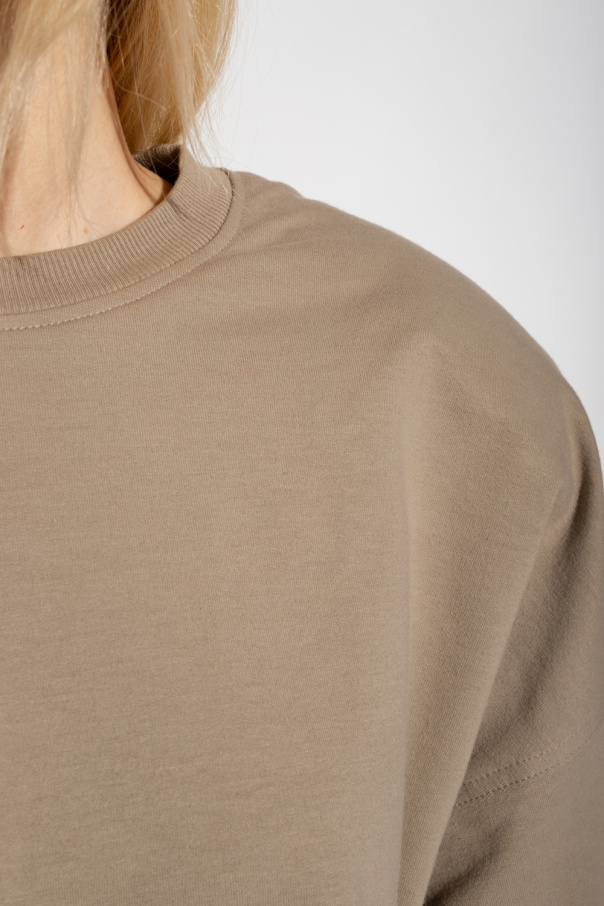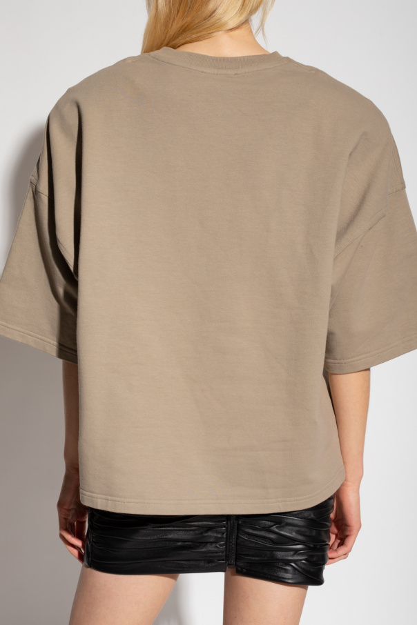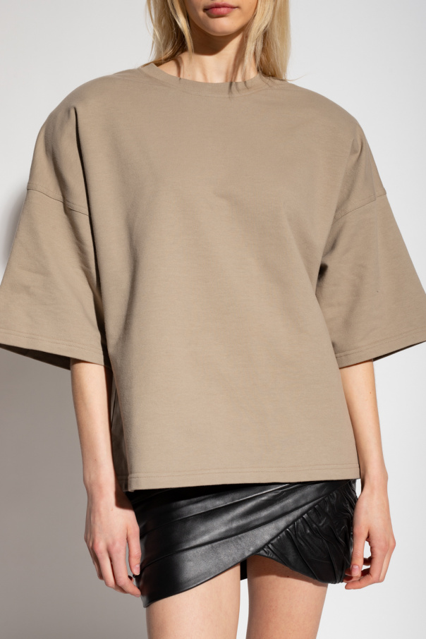 Greyish beige ‘Cergy’ oversize T-shirt from The Mannei. Crafted from cotton, this design features a ribbed crew neck and padded shoulders.