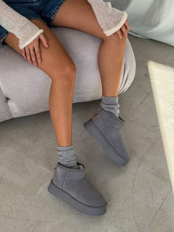 Матеріал верху:Замша ,Висота виробу:Низькі ,Халява:Широкая ,Сезон:Зима ,Матеріал підкладки:Штучне хутро ,Тип підошви:Платформа , - Shipping