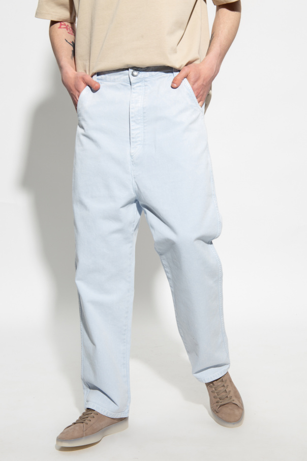 Blue jeans from Ami Alexandre Mattiussi. Made of cotton, this pair falls with straight legs and features button fastenings, classic five pockets and a black patch with an embossed logo at the back.