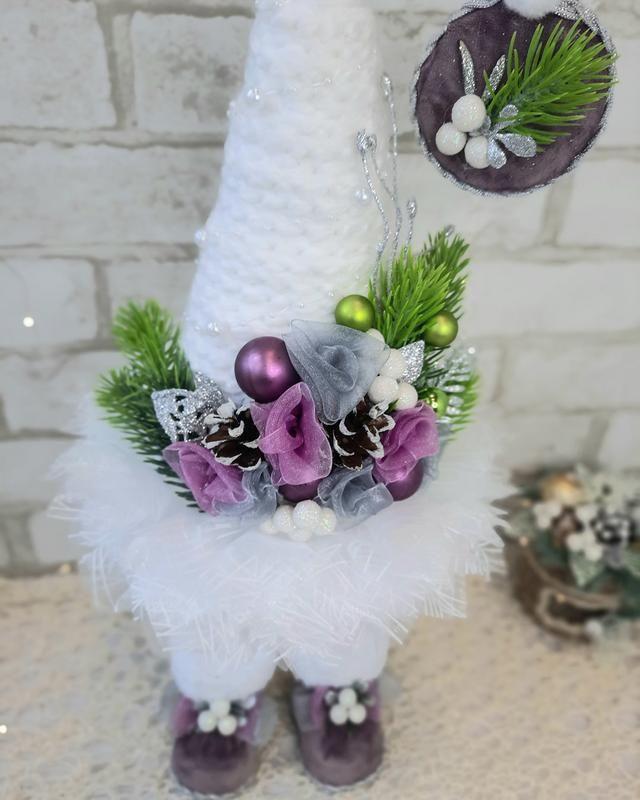 Ёлочка выполнена из качественной пряжи, органзы с добавлением декоративных элементов.