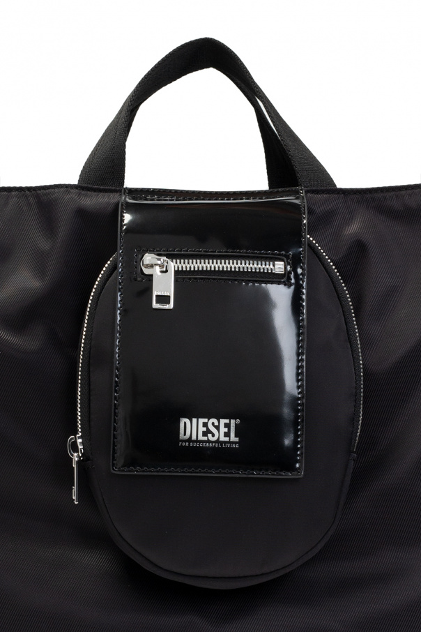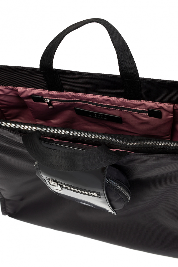 Black ‘Trukee’ shopper bag from Diesel. Printed with the brand's logo in silver-tone, this design features two zipped pockets on the front, two half-round handles, a long strap and one internal compartment with two zip pockets and one slip pocket.