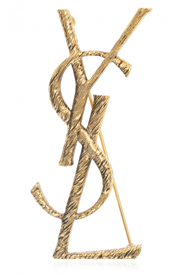Antiqued gold-tone brooch from Saint Laurent. Made of brass, this item showcases the brand's logo.