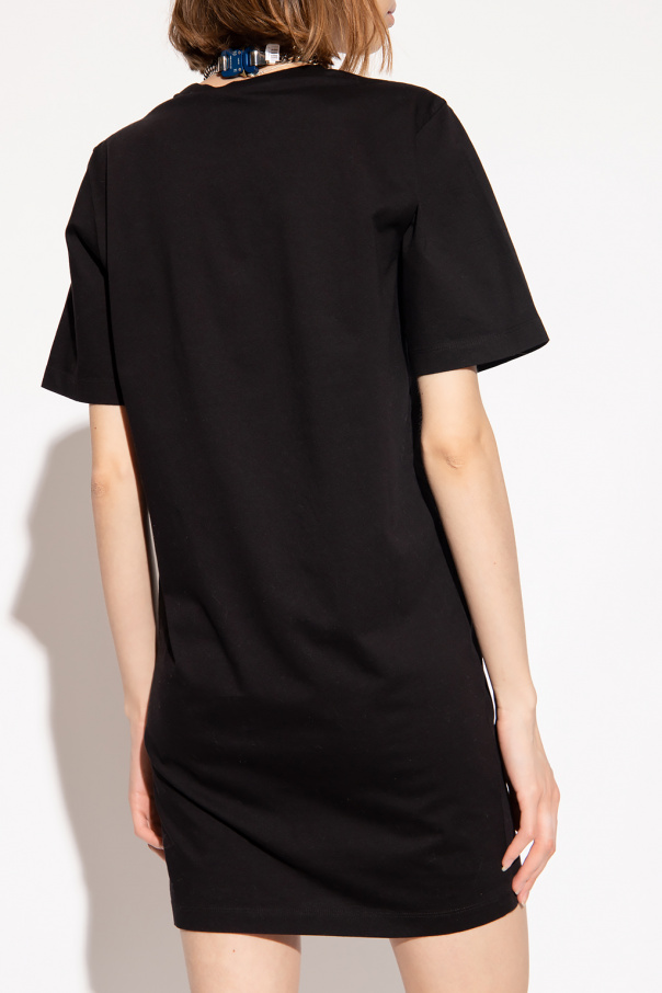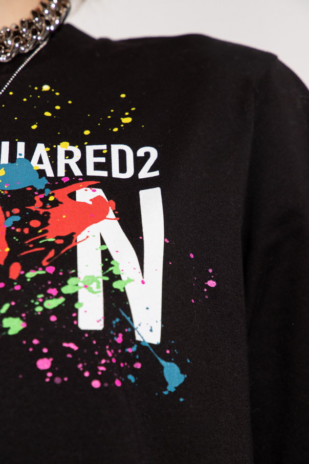Black T-shirt dress from Dsquared2. Made of cotton, this short sleeve design features a multicolored paint splatter print, logo detail and ribbed crew neck.