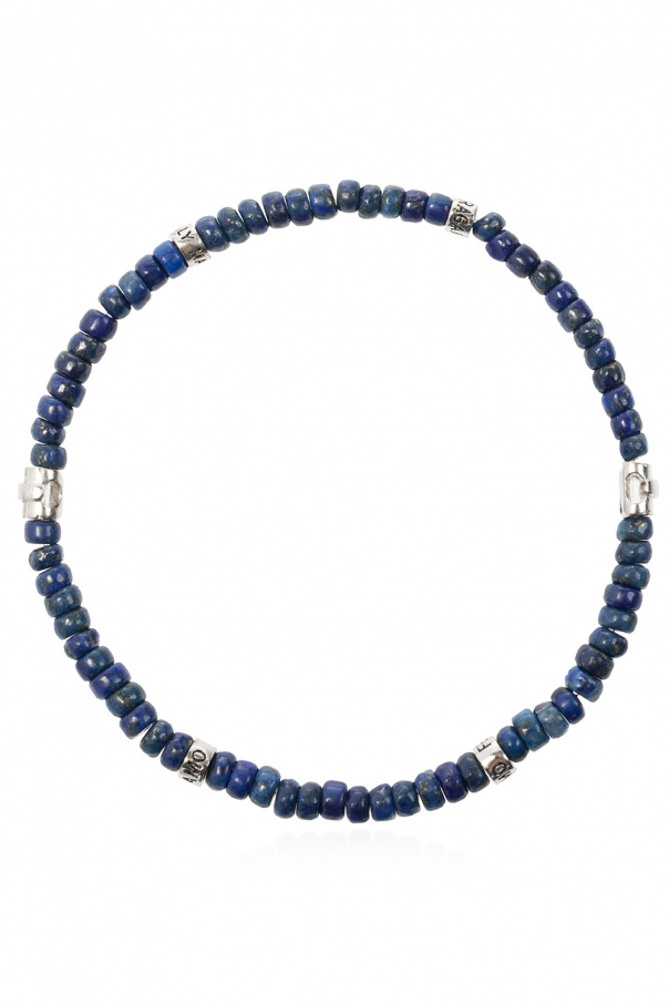 Navy blue, black and silver-tone bracelet from Salvatore Ferragamo. Made of brass and decorated with semiprecious stones, this item showcases an engraved logo.