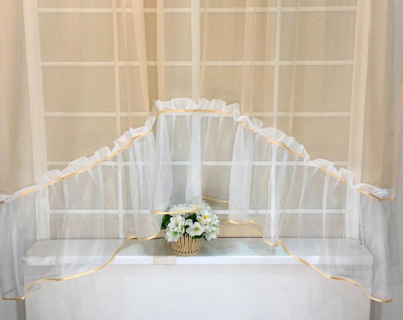 Материал ― шторный шифон, внизу и пришита ажурная планка. Вверху пришит
