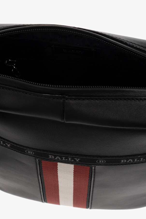 Black ‘Holm’ shoulder bag from Bally. Crafted from smooth bovine leather, this design fastens with a zipper and showcases the brand's signature red and white stripe motif and one zip pocket on the front, a logo patch at the back, an adjustable shoulder strap, silver-tone metal hardware and one internal compartment with two slip pockets and one zip pocket.
