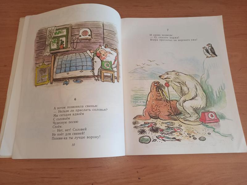 Забавный телефонный разговор зверей, развеселит детей и подарит массу улыбок. Главный герой сказки «Телефон» никак не может выспаться, потому что по ночам у него постоянно звонит телефон. Сначала позвонил слон и попросил прислать ему несколько пудов шоколада для его маленького сына. Потом звонил крокодил и просил прислать калоши. Потом зайцы просили им прислать перчатки, а мартышкам потребовались книги. Эта сказка учит тому, что нужно проявлять деликатность и не стоит беспокоить людей в позднее время без веских на то оснований. Сказка учит соблюдать культуру общения и проявлять уважение к другим людям. Цветные полностраничные и по тексту иллюстрации, рисунки Сутеев Владимир Григорьевич — русский советский писатель, художник-иллюстратор и режиссер-мультипликатор, сценарист.Состояние: ХорошееЦвет:- Разноцветный