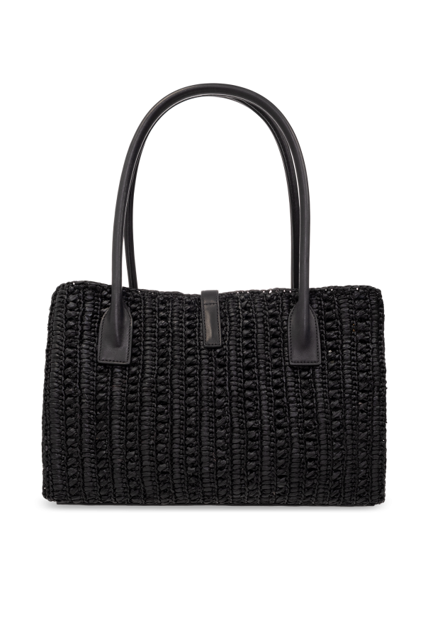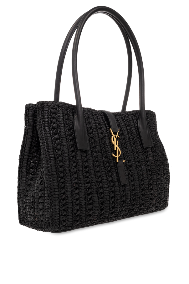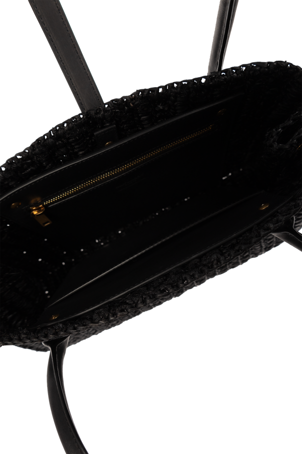 Black ‘Panier’ shoulder bag from Saint Laurent. Made from raffia and calf leather, this design secures with a branded strap and features side adjusters, two half-round handles, antiqued gold-tone metal hardware and one internal compartment with one zip pocket and one slip pocket.