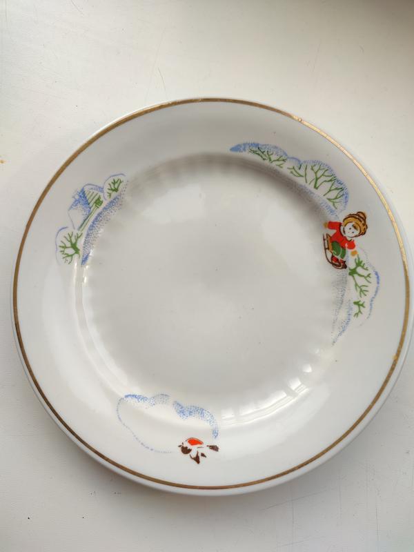 Тарелочки для первых и вторых блюд тернопольской фарфоровой фабрики. 70-е. Отличное состояние, без потерь. На тарелках изображены прекрасные моменты из детства - малыш на санках, заснеженный домик, снеговик... :) В наличии два набора. Замеры на фото. Стоимость одного набора из двух тарелок 180 грн.