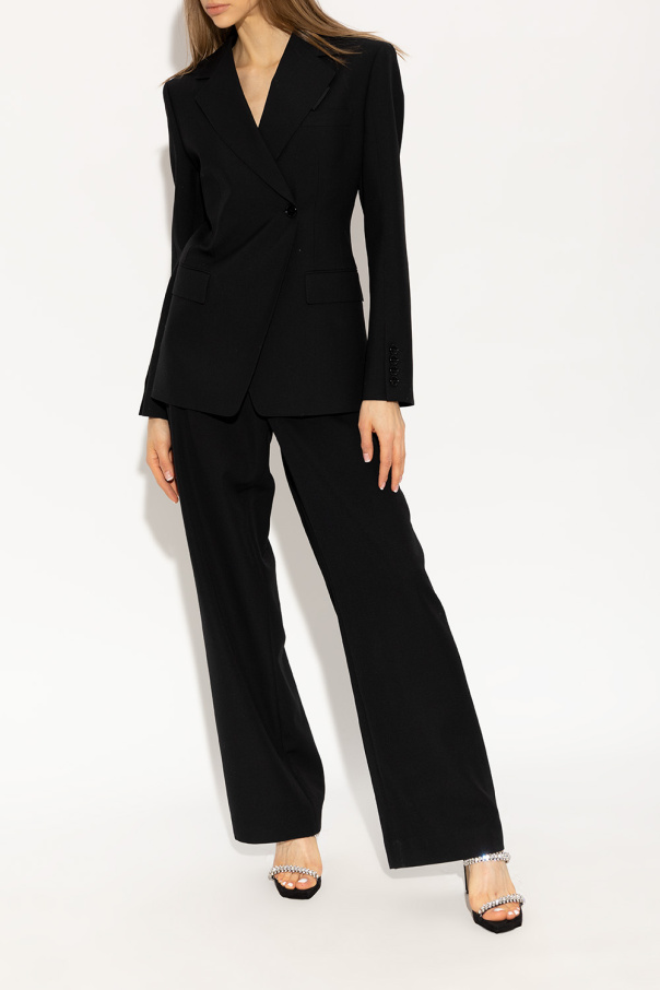 Black ‘Bing’ heeled sandals from Jimmy Choo. Made of suede, this model features an adjustable buckle strap at the ankle, a pointed toe, a cream leather sole and a crystal-bejewelled strap on the front.