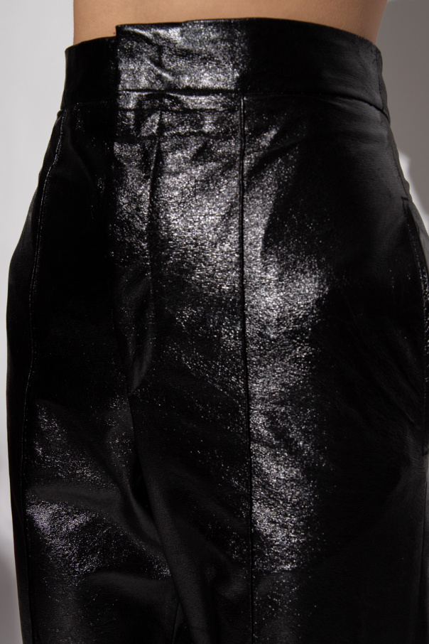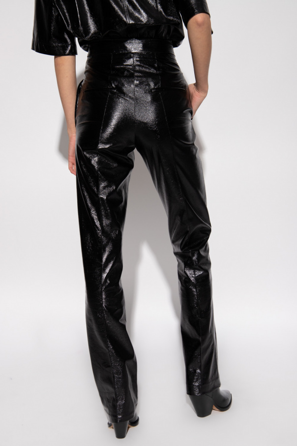 Black trousers from Isabel Marant. Crafted from faux leather, this pair features a zip fly with a button and hook, two frontal pockets and straight legs.