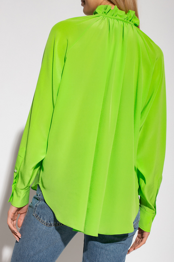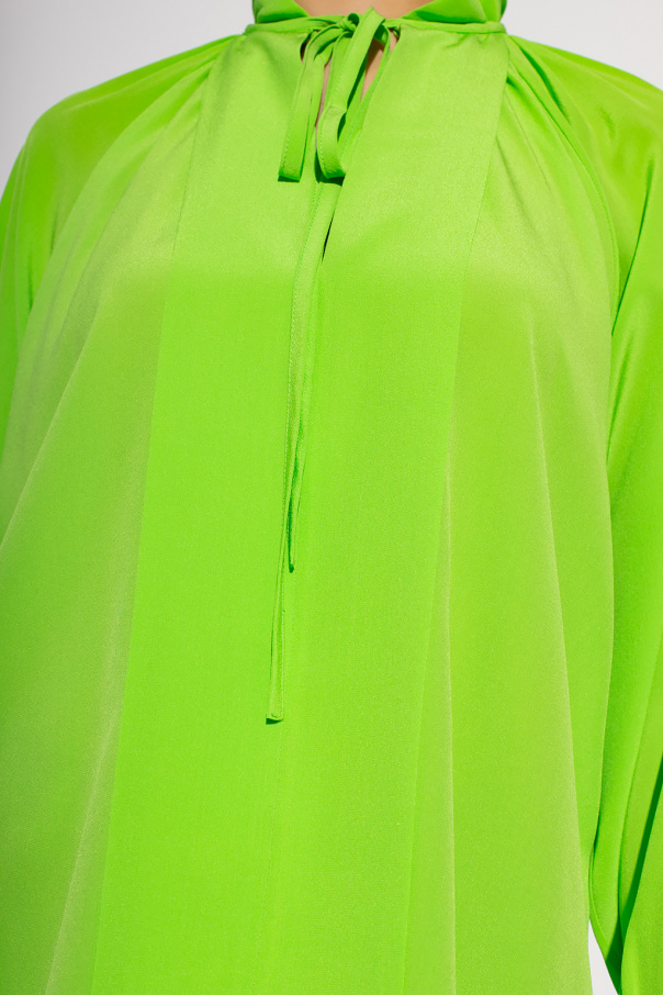 Green shirt from Victoria Beckham. Made of silk, this garment features a decorative tie neck and long sleeves with banded cuffs.