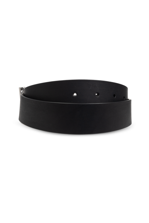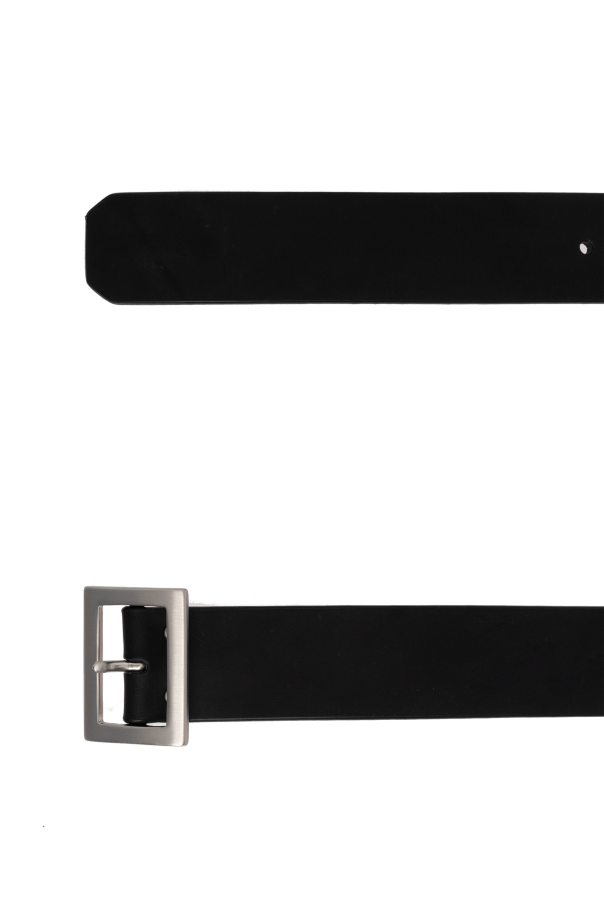 Introducing the Rick Owens Leather Belt, a quintessential accessory from an exclusive fashion collection. This belt epitomizes elegance and sophistication with its wide, rectangular shape and minimalist design. Crafted from the finest leather, this belt boasts a sleek, monochromatic black hue, making it a versatile addition to any wardrobe. The luxurious material ensures both durability and comfort, providing a refined touch to every ensemble. The belt features a silver-toned, rectangular buckle with a simple yet stylish design, perfectly complementing the overall aesthetic. It includes multiple evenly spaced holes for easy adjustment, allowing for a tailored fit that meets individual preferences. True to the distinctive style of Rick Owens, this belt is devoid of excessive embellishments, emphasizing its classic and understated elegance. The absence of logos or additional decorations highlights its timeless appeal. Why Choose This Product? High-quality leather for unparalleled durability and comfort. Versatile black color that pairs effortlessly with various outfits. Minimalist silver buckle for a sleek, modern look. Adjustable fit with multiple holes for personalized comfort. Designed by renowned fashion icon Rick Owens.