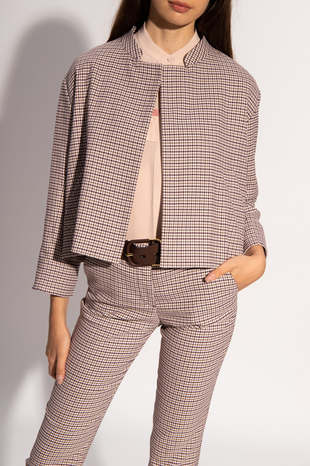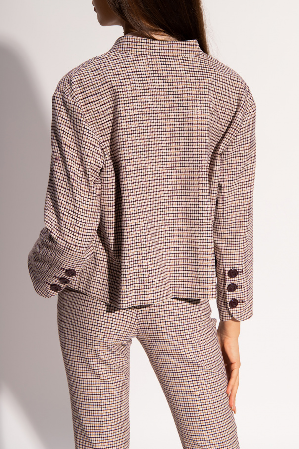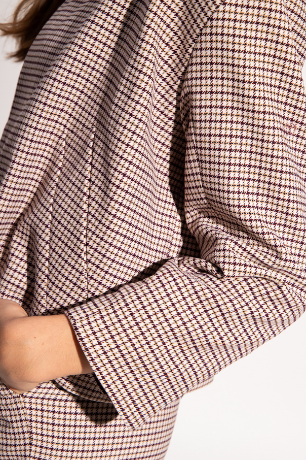 Cream, maroon and beige blazer from See By Chloé. Decorated with a houndstooth pattern, this garment features two front pockets and long sleeves.