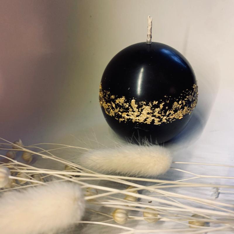 Черные свечи из натурального пальмового воска с золотом. Время горения шара 14 часов. Сердца - 4 часа.