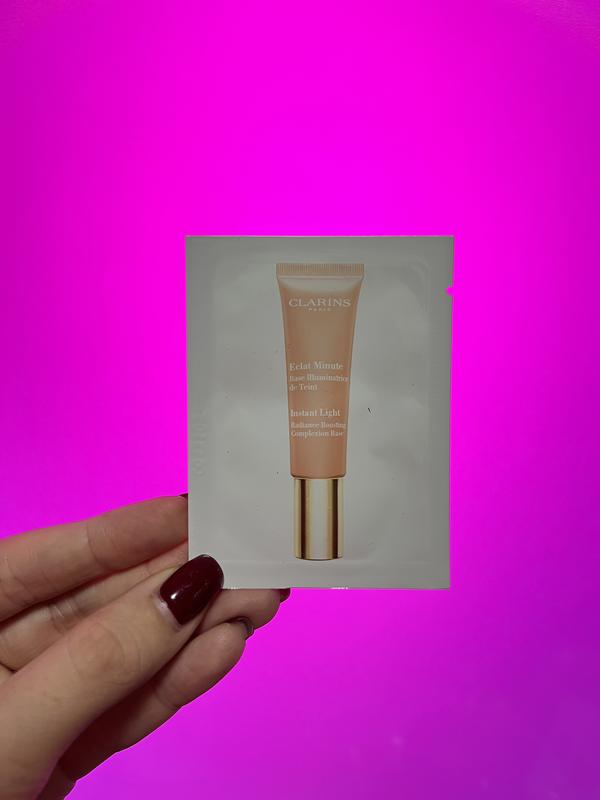 База под макияж Clarins Eclat Minute Instant Light Radiance Boosting Complexion Base имеет уникальную маскирующую текстуру, которая ложится ровным, легким слоем на кожный покров, не забивая поры и не подчеркивая мимические морщины и шелушения.