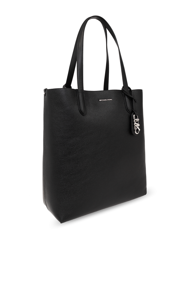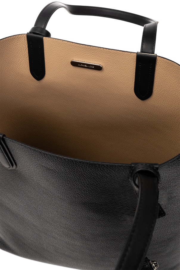 Black and beige ‘Eliza XL’ reversible shopper bag from Michael Michael Kors. Crafted from grained leather, this design showcases a metal logo plaque on both sides, two half-round handles, silver-tone metal hardware and a detachable logo pendant. Its interior houses a removable zip pouch on a strap.