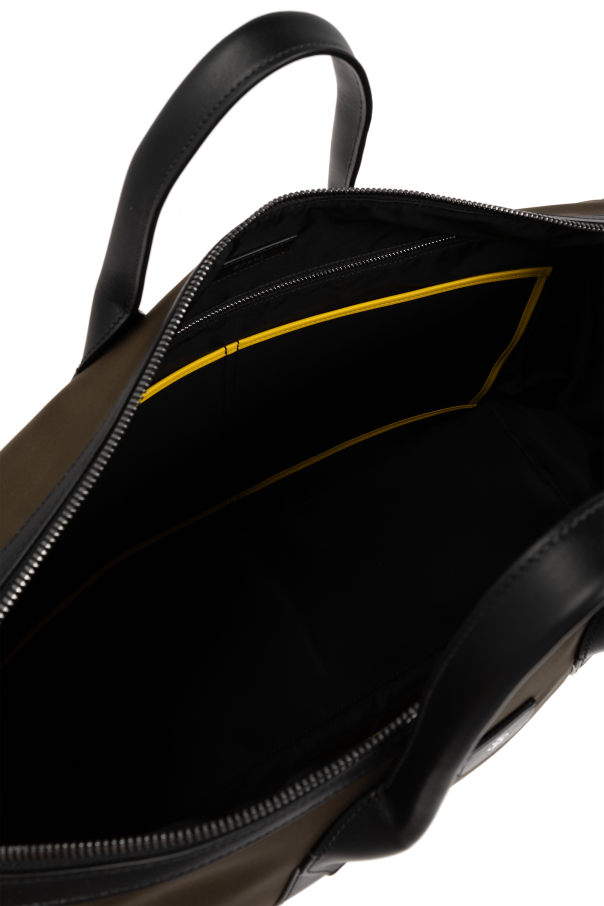 Introducing the Exclusive Handbag by Bally, a masterpiece crafted by one of the world's oldest luxury brands. Established in Switzerland in 1851, Bally is renowned for its exquisite leather goods that seamlessly blend traditional craftsmanship with contemporary influences. This handbag exudes elegance with its classic rectangular shape and rounded edges. Made from high-quality brown nylon, it promises durability and resistance to wear and tear. The bag features two shorter handles for hand carrying and a longer, adjustable black leather strap for shoulder wear. The small, square designer logo in black on the front adds a touch of sophistication, while the reinforced black leather corners enhance both style and strength. A top zipper closure provides easy access to the spacious interior, which includes one main compartment and four additional pockets, ensuring ample space for all your essentials. The khaki color interior offers a refined contrast, elevating the bag's overall aesthetic. Why Choose This Handbag? Timeless design by the prestigious Bally brand High-quality materials that ensure longevity Elegant brown color with sophisticated black accents Practicality with multiple carrying options Spacious interior with well-organized pockets