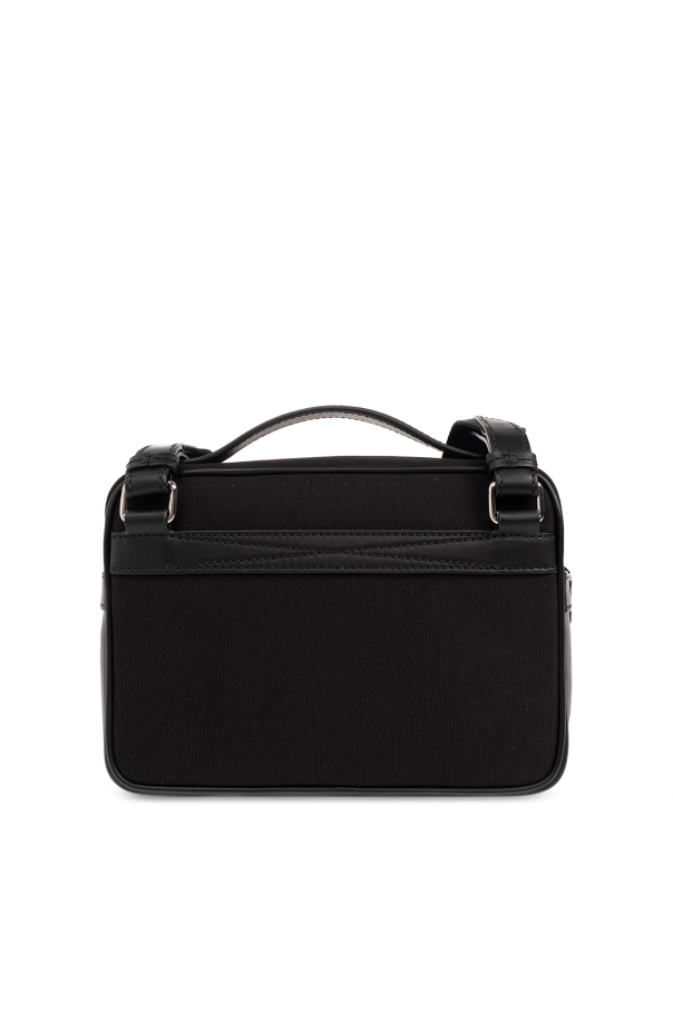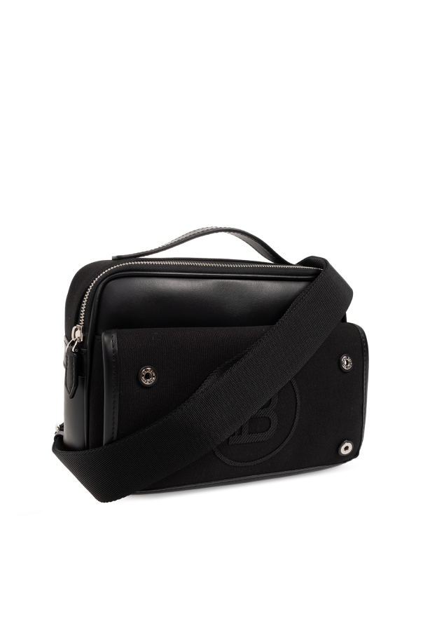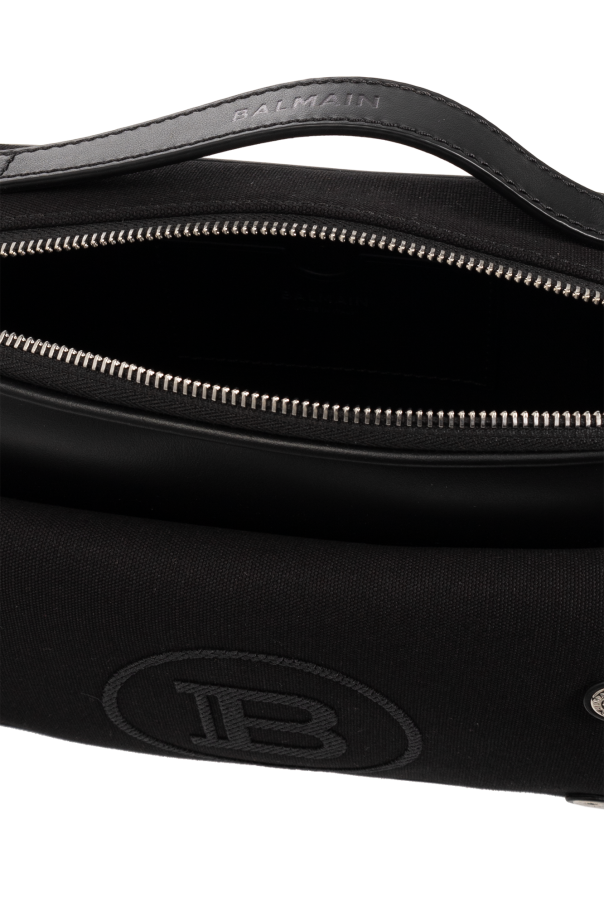 Black shoulder bag from Balmain. Made of cotton with leather trims, this design features a zip fastening, logo embroidery, logo details, front pocket with a flap and magnetic snaps, half-round handles, adjustable strap, silver-tone metal hardware and one internal compartment with one slip pocket and one card slot.
