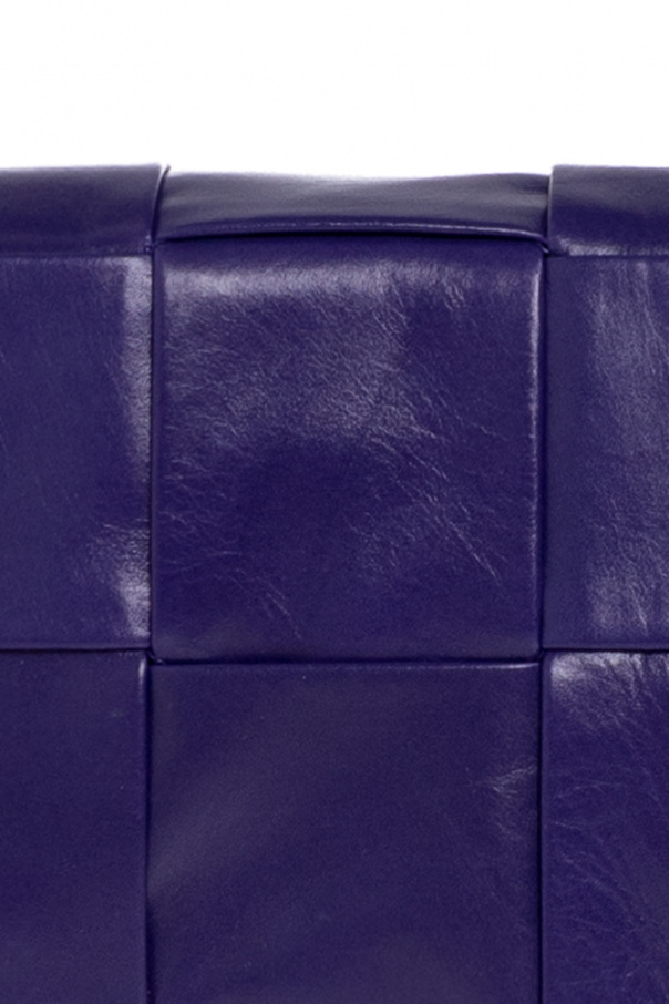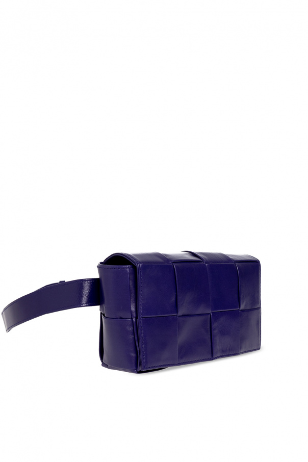 Dark purple ‘Cassette Mini’ belt bag from Bottega Veneta. Crafted from calf leather accentuated with the brand's signature Intreccio weave, this design features magnetic snap closures, an adjustable strap and one internal compartment with a slip pocket.
