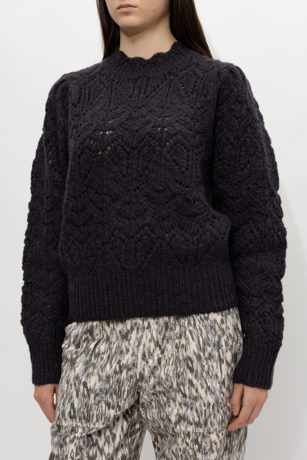 Dark grey ‘Gali’ crewneck sweater from Isabel Marant Etoile. Crafted from wool with a distinctive knit, this style features long puff sleeves and ribbed trims on the edges.